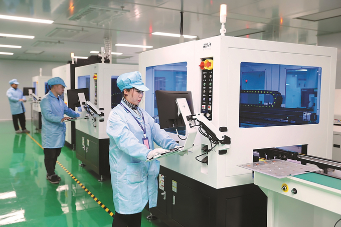 在位于淮安市漣水經(jīng)濟(jì)開(kāi)發(fā)區(qū)的業(yè)豐精密科技無(wú)塵車間里,高精密自動(dòng)化生產(chǎn)線一派繁忙,工人們正趕制國(guó)內(nèi)外訂單。 王昊 劉東升 攝 (視覺(jué)江蘇網(wǎng)供圖)
