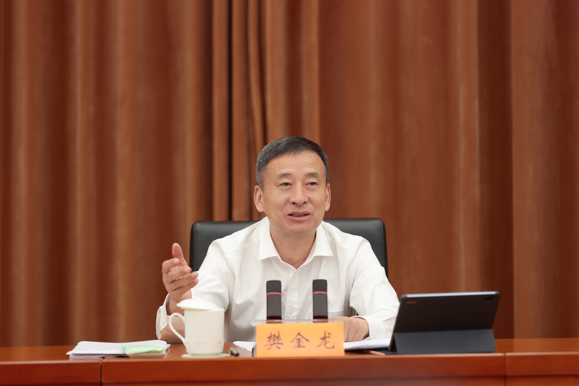 9月15日下午,省十四屆人大常委會舉行第五十次主任會議。受省委書記、省人大常委會主任、黨組書記信長星委托,省人大常委會常務副主任、黨組副書記樊金龍主持會議,副主任魏國強、曲福田、夏心旻、張寶娟和秘書長陳建剛出席會議。