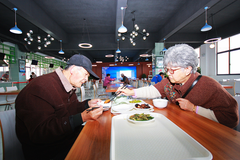 東坡肉、水晶蝦仁、番茄炒蛋……臨近中午時分,走進幸福路街道西大嶺社區(qū)百穗餐廳,寬敞明亮的大廳里已經(jīng)坐著好些老人,他們落座后一邊聊家常,一邊用餐?!拔依习閮汉臀叶?0歲了,平常做飯也不方便,這餐廳菜品健康美味、營養(yǎng)均衡,重點是就在家門口,走過來只要3分鐘?!闭诎偎氩蛷d用餐的社區(qū)居民李奶奶高興地說道。