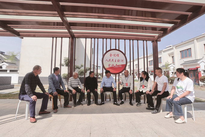 南京市高淳區(qū)淳溪街道栗園社區(qū)打造“居民議事亭”,人大代表現(xiàn)場接待前來尋求幫助的居民。