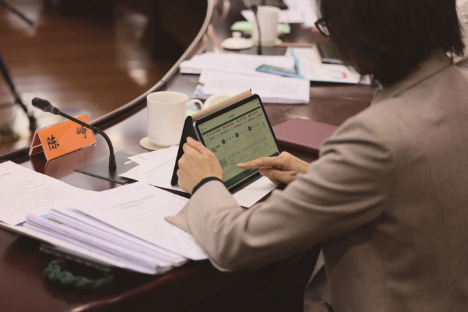 如今,在省人大常委會會議上,常委會組成人員、會議列席人員熟練地滑動著面前的平板電腦,認真查閱各項審議文件,攝像機對準審議發(fā)言的代表委員記錄下精彩瞬間,這些變化,構成會上一道新的風景。