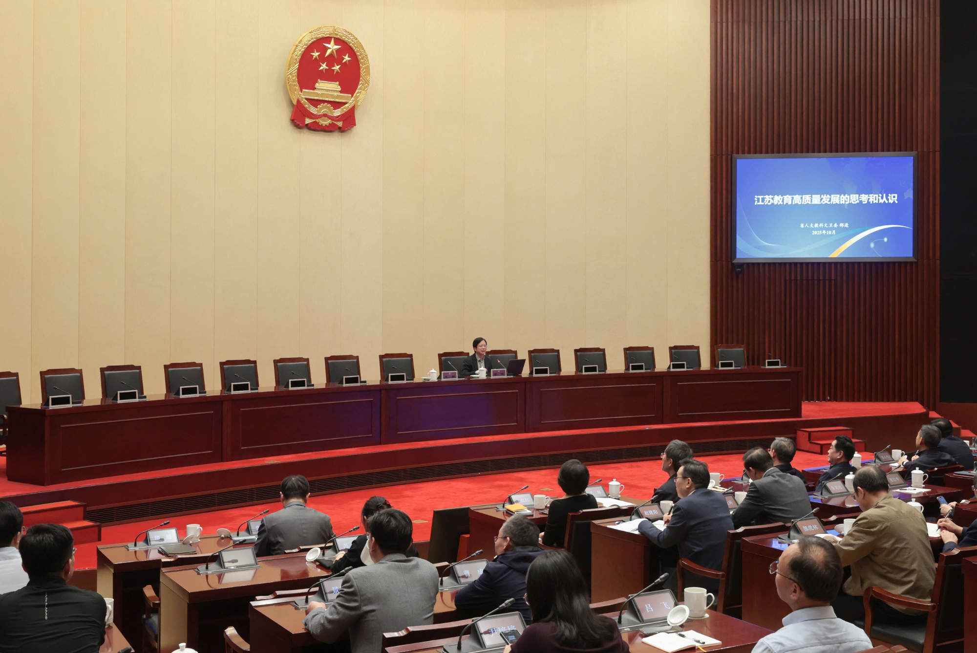 邵進(jìn)以“江蘇教育高質(zhì)量發(fā)展的思考和認(rèn)識(shí)”為主題,梳理了我國(guó)教育發(fā)展的歷史脈絡(luò)與理論演進(jìn),解讀了習(xí)近平總書(shū)記關(guān)于教育工作重要論述的精神實(shí)質(zhì)、實(shí)踐要求和“十五五”規(guī)劃《建議》的最新精神,重點(diǎn)以高等教育為例,對(duì)江蘇高校規(guī)模、質(zhì)量、科創(chuàng)成果、頂尖人才、產(chǎn)學(xué)研轉(zhuǎn)化等各方面數(shù)據(jù)進(jìn)行橫向?qū)Ρ扰c案例展示,具體分析了我省高等教育的基礎(chǔ)優(yōu)勢(shì)與進(jìn)步空間,并介紹了近年來(lái)開(kāi)展教育立法工作所取得的成效和下一步計(jì)劃。