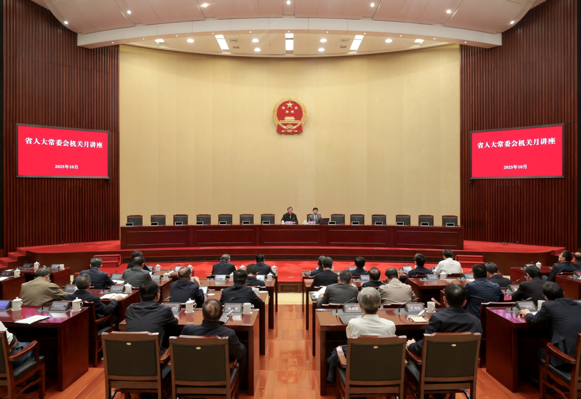10月31日下午,省人大常委會(huì)舉辦機(jī)關(guān)月講座專題報(bào)告會(huì),省人大監(jiān)察司法委委員張鋒、教科文衛(wèi)委委員邵進(jìn)分別作專題報(bào)告。省人大常委會(huì)副秘書(shū)長(zhǎng)、辦公廳主任王林主持。