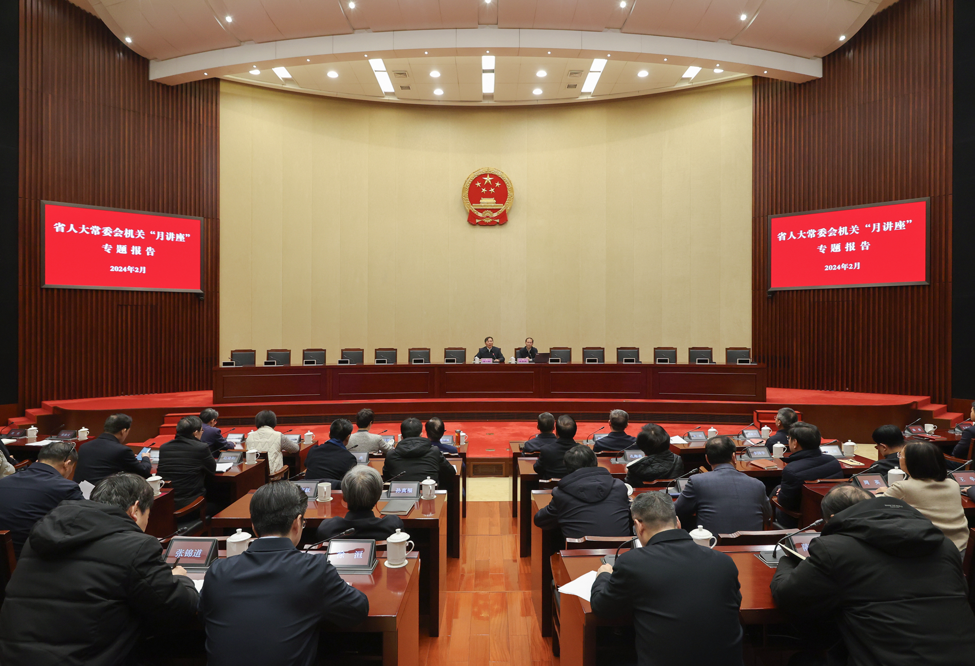 2月29日上午,省人大常委會舉辦機關理論學習“月講座”專題報告會。省人大常委會副秘書長、研究室主任秦一彬主持,省人大教科文衛(wèi)委副主任委員水家躍,省人大環(huán)資城建委副主任委員蔡任杰分別作專題報告。