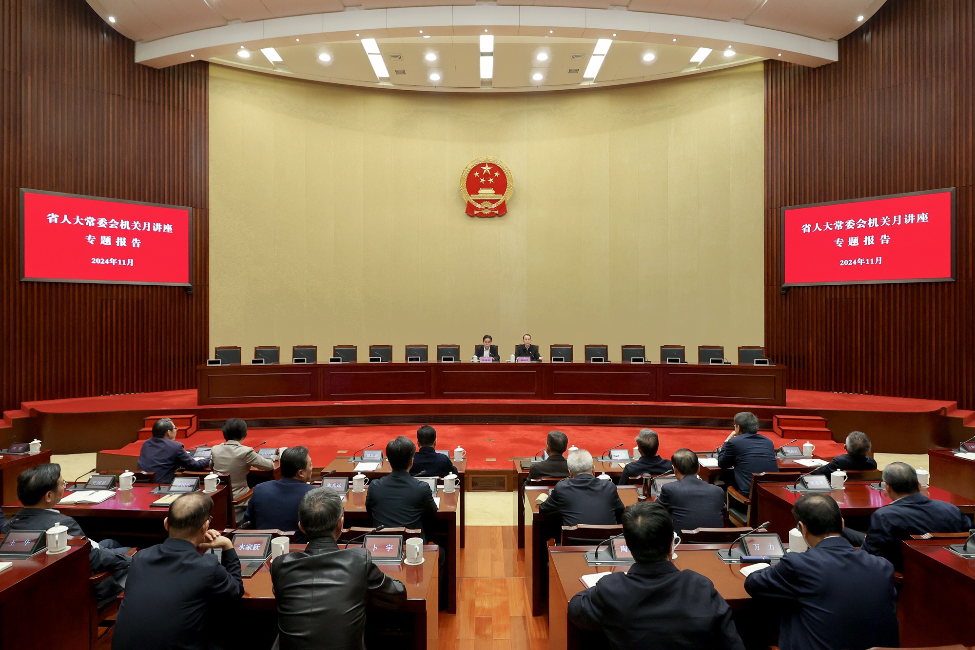 11月4日下午,省人大常委會舉辦月講座專題報告會,省人大常委會代表工委主任楊根平作專題報告。省人大常委會秘書長陳建剛主持。