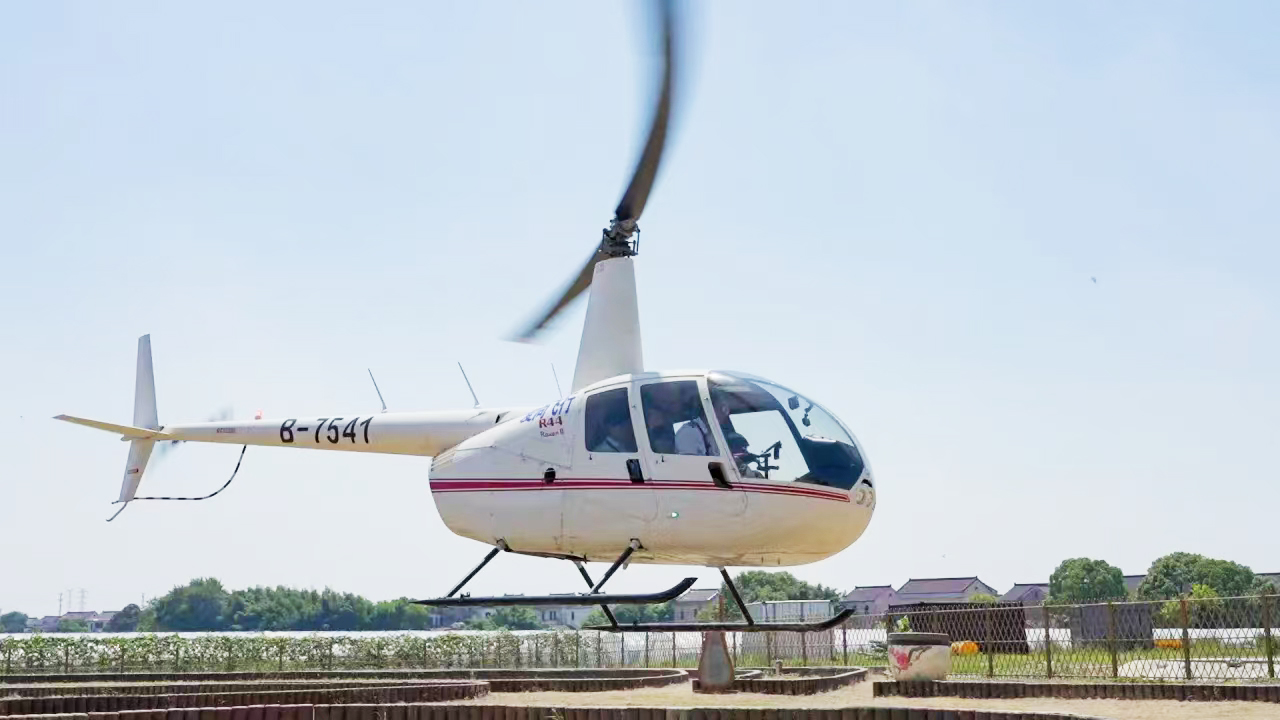 2023年12月1日上午9時,一架白色直升飛機(jī)在東港村愛心農(nóng)場騰空而起,翱翔天際,順利完成首次飛行。