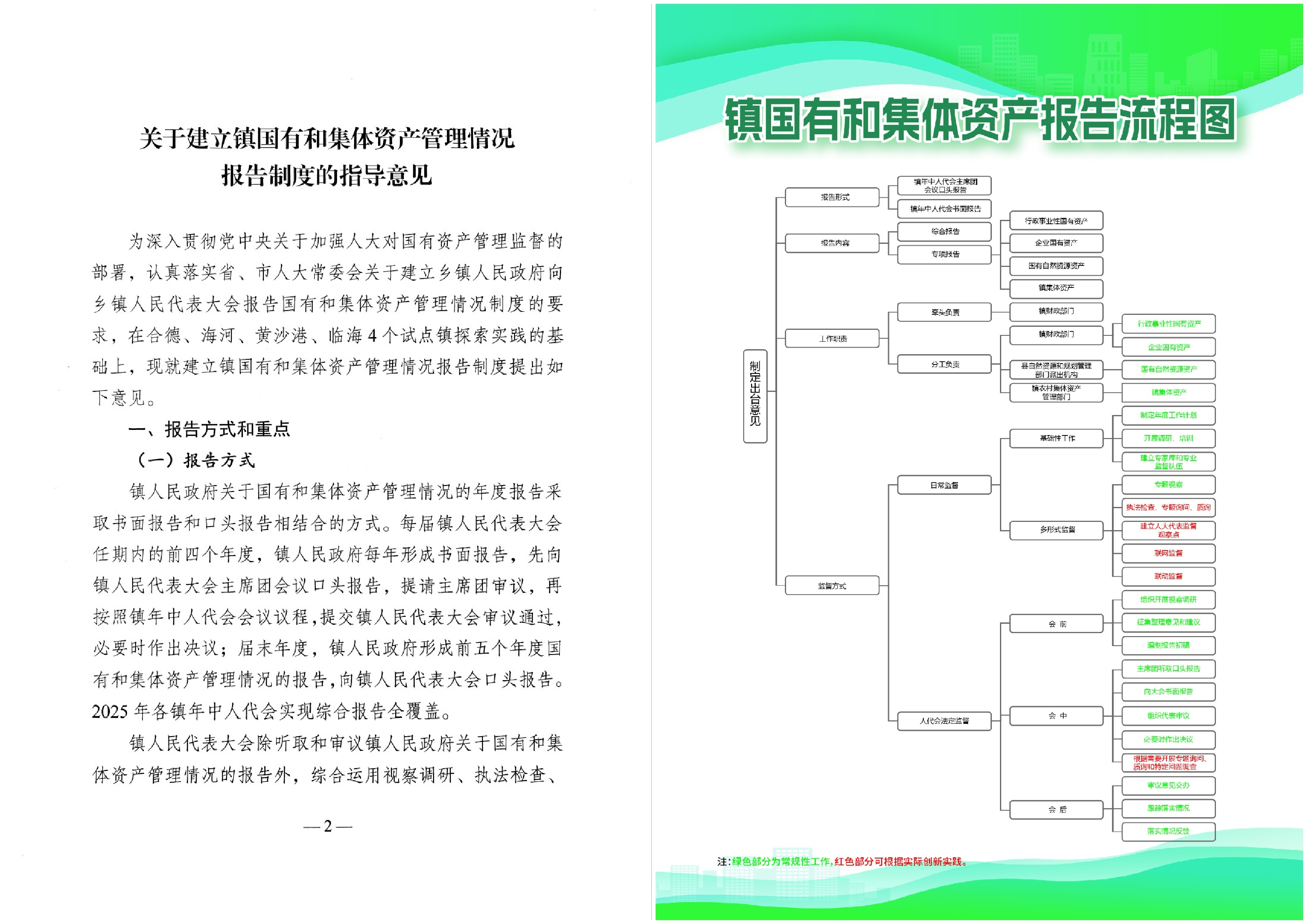 為進一步規(guī)范鄉(xiāng)鎮(zhèn)國有和集體資產(chǎn)管理監(jiān)督,射陽縣人大在試點鄉(xiāng)鎮(zhèn)探索實踐的基礎上,制定出臺了《關于建立鎮(zhèn)國有和集體資產(chǎn)報告制度的指導意見》,編制了鎮(zhèn)國有和集體資產(chǎn)報告流程圖,創(chuàng)新構建了“2235”工作推進機制,即圍繞“兩個促進”、實行“兩個聯(lián)動”、實施“三年行動”方案、建立“五項制度”:圍繞促進國有和集體資產(chǎn)管理規(guī)范化、制度化、法治化和資產(chǎn)保值增值和盤活利用,實行縣鎮(zhèn)縱向聯(lián)動,人大與財政、審計、監(jiān)委、檢察院、法院等橫向聯(lián)動,支持政府制定三年行動方案,推動政府通過三年努力將閑置資產(chǎn)盤活比例提高到80%,并建立專題報告、專項審議、定期視察、人大代表監(jiān)督觀察點、雙向延伸等五項制度。