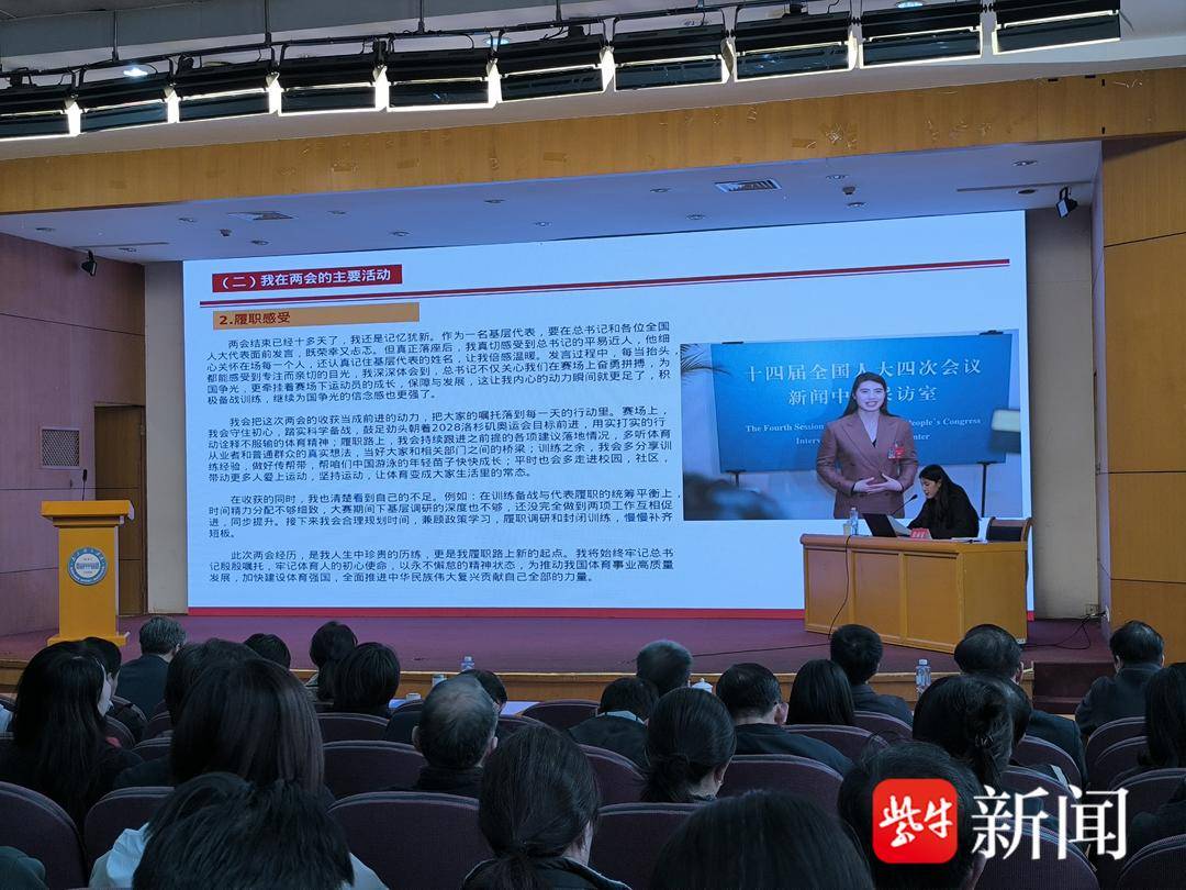 今年全國兩會期間,全國人大代表、南京體育學(xué)院游泳學(xué)院副院長張雨霏向習(xí)近平總書記匯報了自己征戰(zhàn)三屆奧運會的奮斗歷程。3月31日,她在南京體育學(xué)院向該校師生宣講兩會精神、分享履職感受,并接受記者采訪。