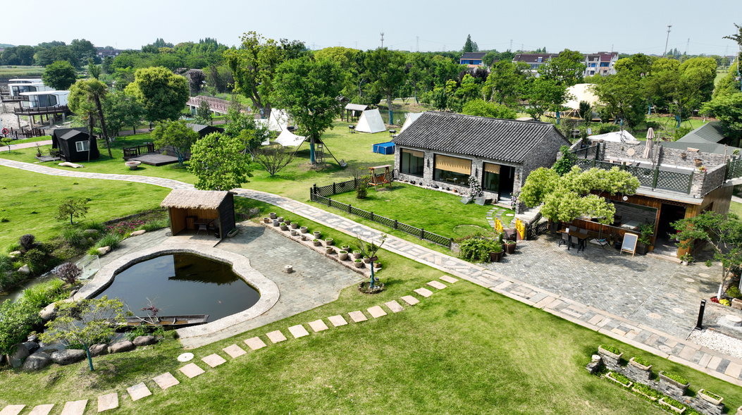 2018年,父親一句“想回村里住”,悄然喚醒了范飛心底深植的鄉(xiāng)愁。作為土生土長(zhǎng)的圩厙村人,白米蕩的粼粼波光、田埂間的陣陣稻香,始終是她記憶中最溫暖的底色。彼時(shí)的圩厙村,基礎(chǔ)設(shè)施日益完善,濕地風(fēng)光愈發(fā)秀美,卻因缺乏配套服務(wù)而難以留住游客。眼見大好風(fēng)光“藏在深閨人未識(shí)”,她深感惋惜。經(jīng)過一番深入考察與慎重思考,她毅然決定返鄉(xiāng)創(chuàng)業(yè),在白米蕩邊打造一座農(nóng)家小院,讓游客慢下來(lái)、留下來(lái),讓沉寂的鄉(xiāng)村煥發(fā)新生機(jī)。一路走來(lái),她始終秉持“要讓小院比家里還舒適”的理念,從設(shè)計(jì)布局到施工落地,從一草一木的栽種到一磚一瓦的壘砌,她全程參與、親手打磨,不放過任何細(xì)節(jié)。這座占地近300畝的小院,以“田園養(yǎng)生+精品民宿”為定位,規(guī)劃建設(shè)“三區(qū)三館三民宿”,巧妙融合江南水鄉(xiāng)的靜謐韻味與現(xiàn)代生活的舒適便利,讓鄉(xiāng)村之美既保留“古意”,又煥發(fā)“新意”。