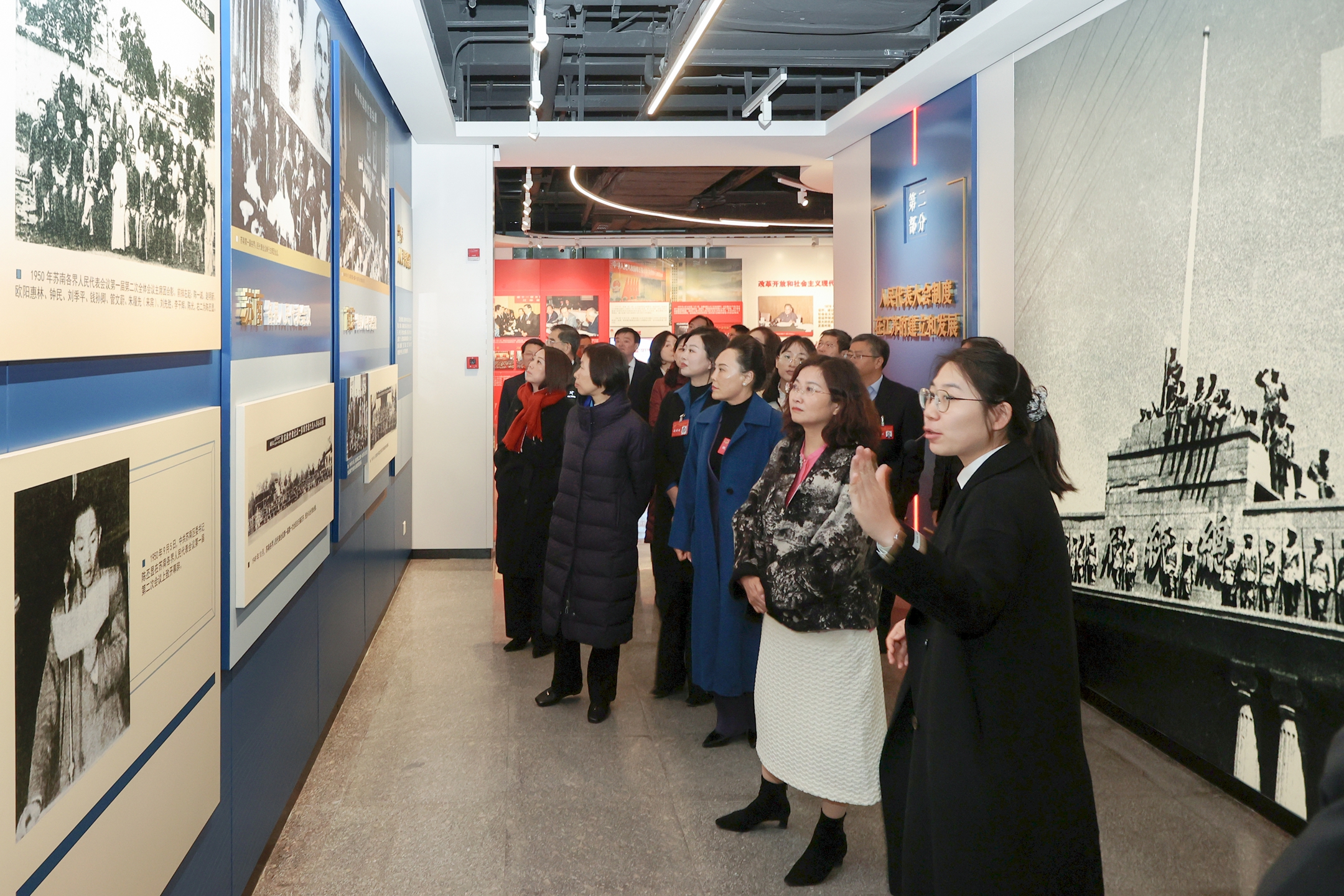 會后,常委會組成人員和列席人員集中參觀“江蘇?人民代表大會制度展”。