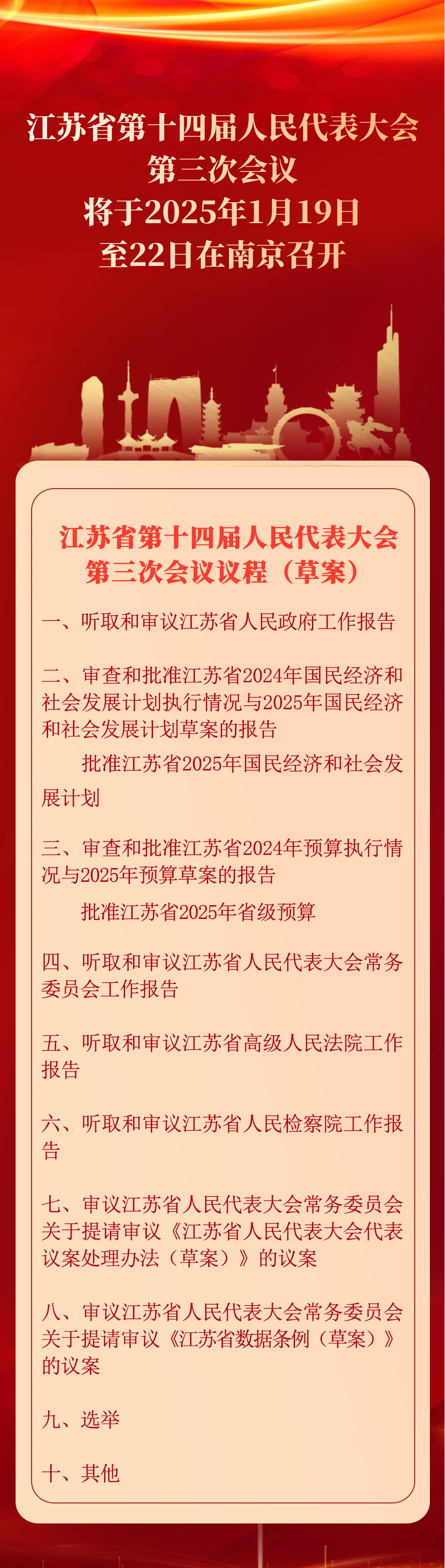 江蘇省第十四屆人民代表大會第三次會議議程(草案)
