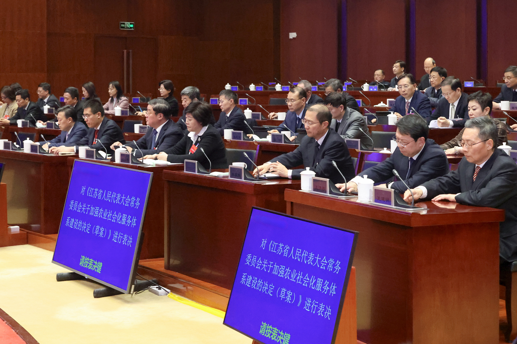 會(huì)議表決通過(guò)了修訂的《江蘇省軟件產(chǎn)業(yè)促進(jìn)條例》,通過(guò)了《江蘇省人民代表大會(huì)常務(wù)委員會(huì)關(guān)于加強(qiáng)農(nóng)業(yè)社會(huì)化服務(wù)體系建設(shè)的決定》《江蘇省人民代表大會(huì)常務(wù)委員會(huì)關(guān)于修改〈江蘇省水資源管理?xiàng)l例〉等二十件地方性法規(guī)的決定》《江蘇省人民代表大會(huì)常務(wù)委員會(huì)關(guān)于廢止〈江蘇省掃除文盲條例〉等十三件地方性法規(guī)的決定》。通過(guò)了省人大常委會(huì)工作報(bào)告稿,省十四屆人大三次會(huì)議議程草案、主席團(tuán)和秘書(shū)長(zhǎng)名單草案、列席人員范圍,通過(guò)了省十四屆人大常委會(huì)代表資格審查委員會(huì)關(guān)于個(gè)別代表的代表資格報(bào)告。批準(zhǔn)了南京等設(shè)區(qū)市報(bào)批的10件法規(guī)。
