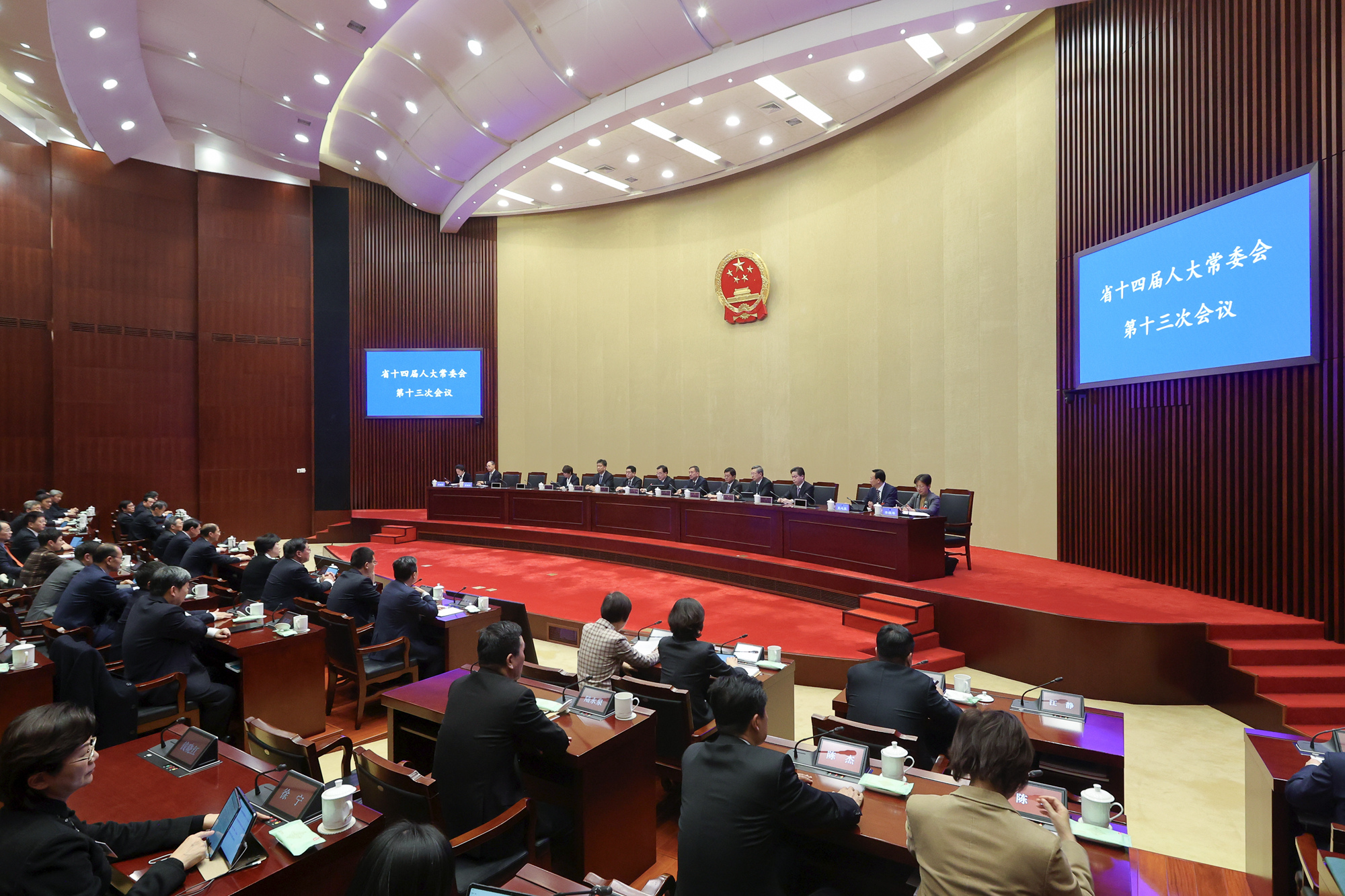 省人大常委會(huì)副主任樊金龍、張愛(ài)軍、魏國(guó)強(qiáng)、曲福田、周廣智、張寶娟和秘書(shū)長(zhǎng)陳建剛出席會(huì)議。副省長(zhǎng)夏心旻,省法院院長(zhǎng)夏道虎,省監(jiān)委、省檢察院負(fù)責(zé)同志列席會(huì)議。