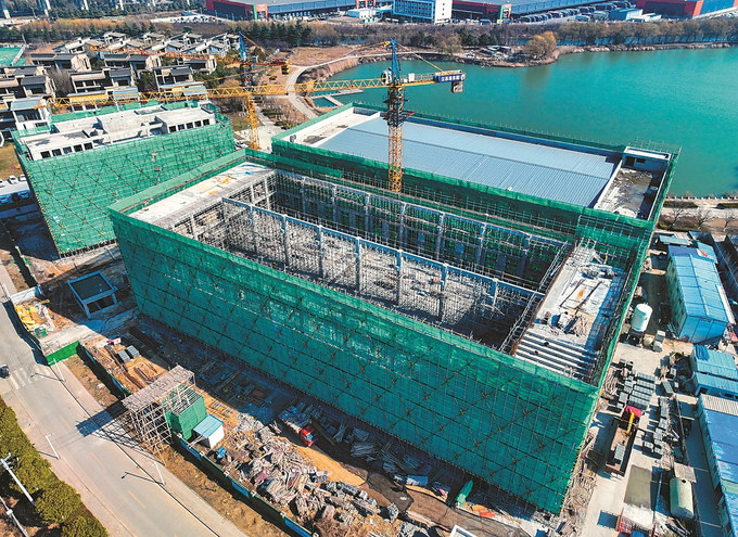 位于徐州的江蘇通潤(rùn)智能科技項(xiàng)目1號(hào)廠房已經(jīng)封頂,2號(hào)廠房及研發(fā)大樓正在施工中。高剛 攝 (視覺(jué)江蘇網(wǎng)供圖)