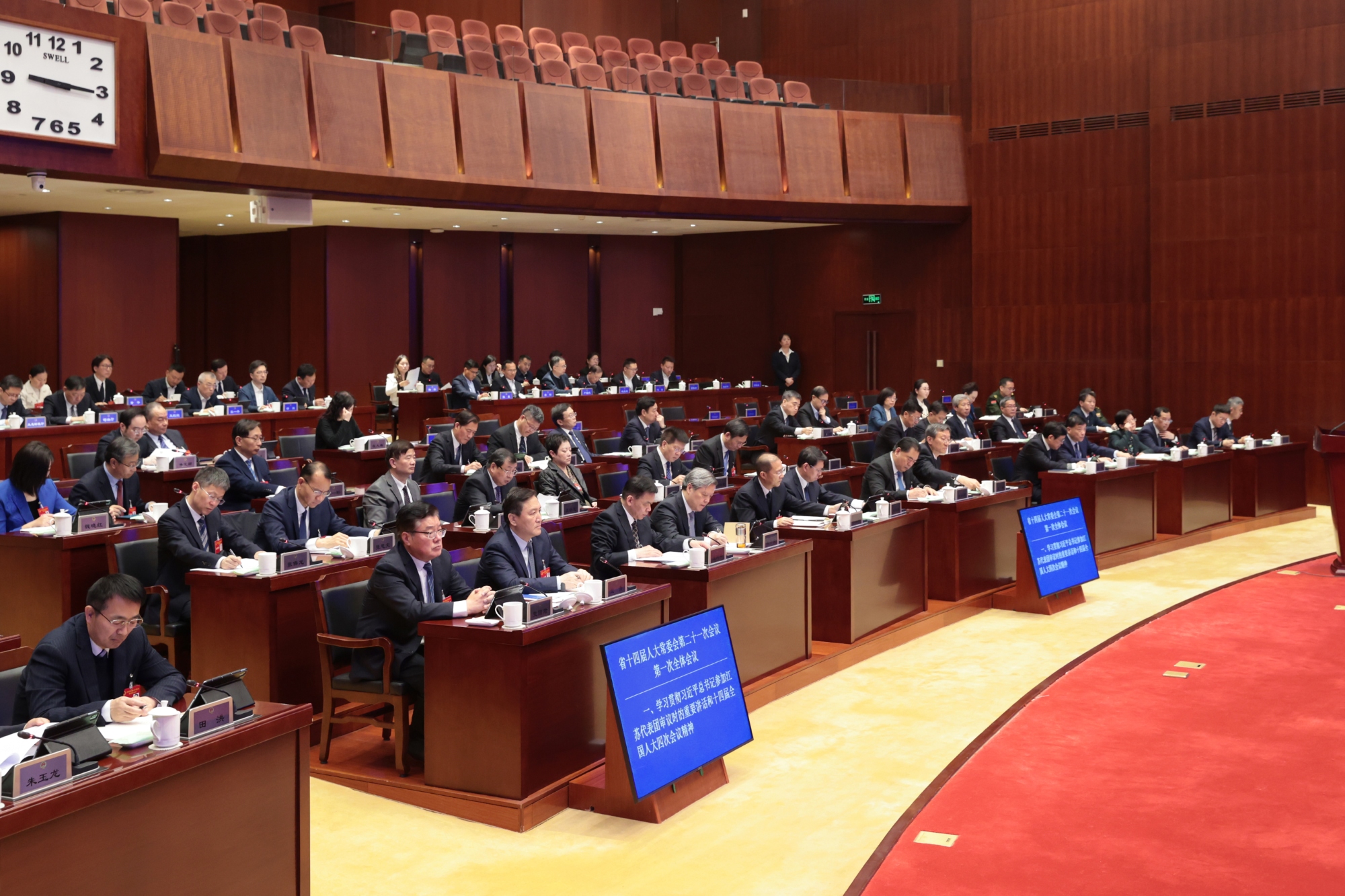 省人大常委會(huì)副主任樊金龍、張愛軍、魏國強(qiáng)、夏心旻、周廣智和秘書長(zhǎng)陳建剛出席會(huì)議。省監(jiān)委主任張忠、副省長(zhǎng)趙巖、省檢察院檢察長(zhǎng)趙鐵實(shí)作人事任免案說明。副省長(zhǎng)胡彬郴、省法院院長(zhǎng)王紅衛(wèi),省監(jiān)委有關(guān)負(fù)責(zé)同志列席會(huì)議。