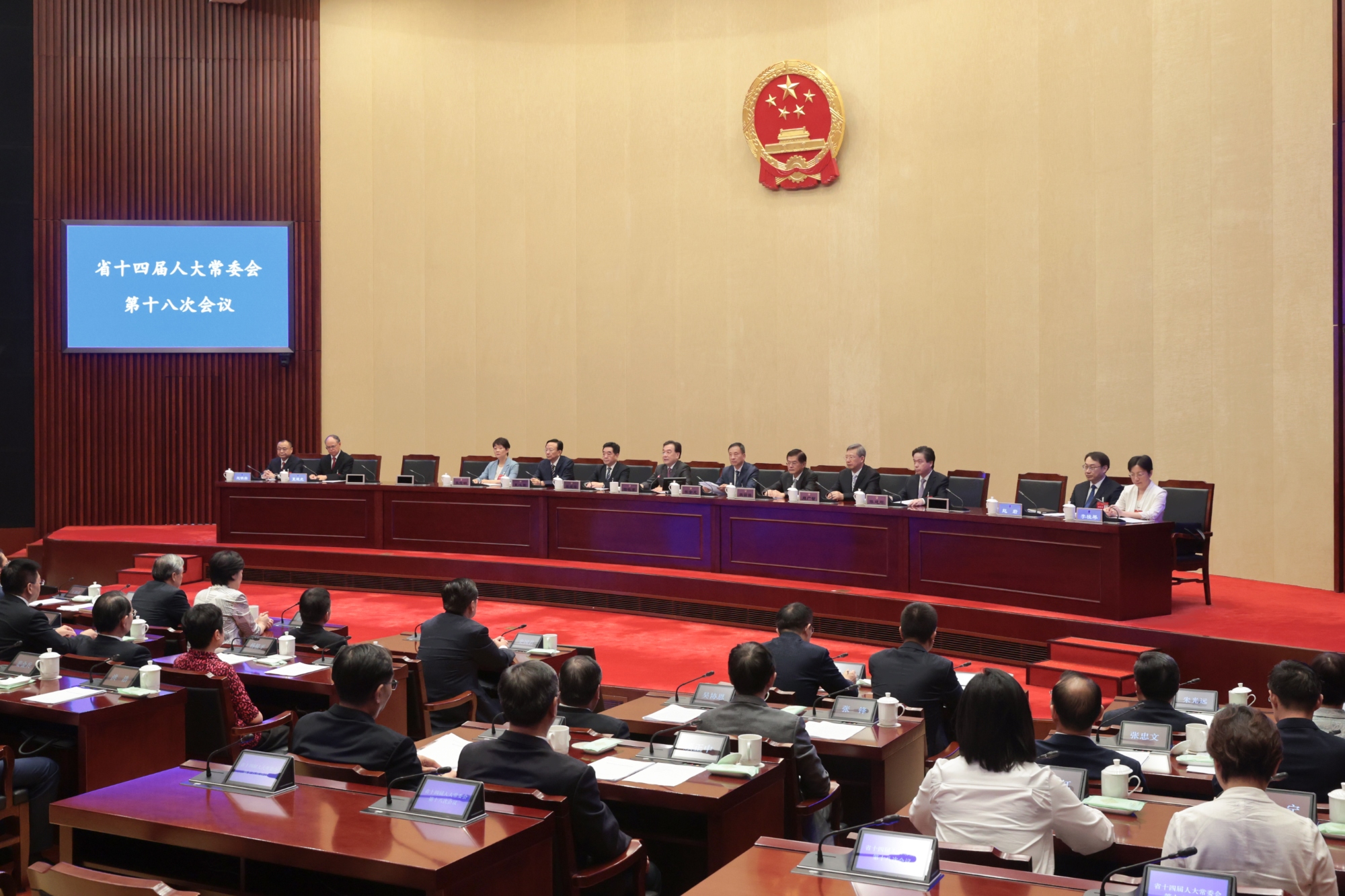 10月9日下午,省十四屆人大常委會第十八次會議在南京召開。省委書記、省人大常委會主任信長星主持會議,副主任樊金龍、張愛軍、魏國強(qiáng)、夏心旻、周廣智、張寶娟和秘書長陳建剛出席會議,副省長趙巖、省法院院長夏道虎、省檢察院檢察長趙鐵實(shí),省監(jiān)委負(fù)責(zé)同志列席會議。