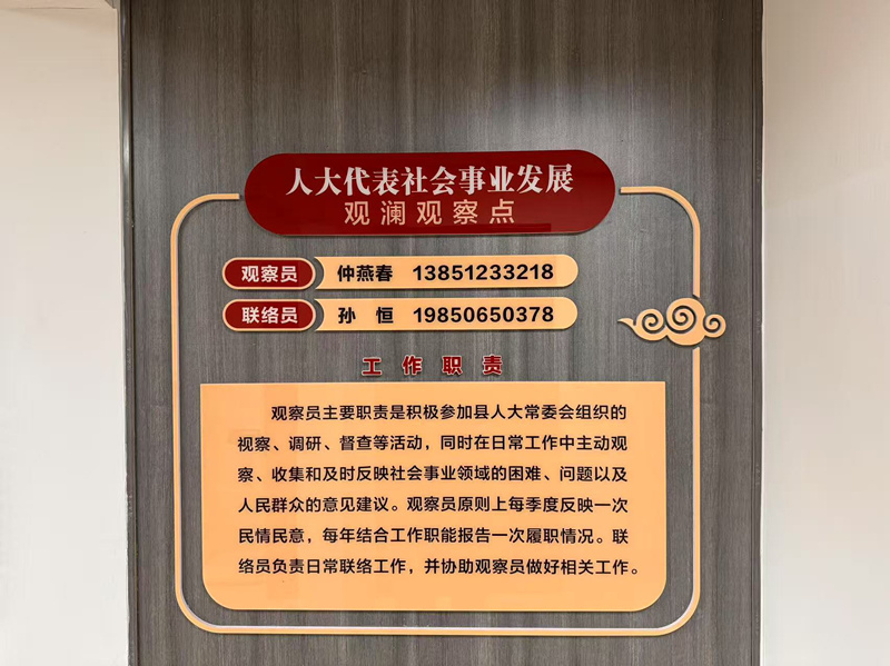 “我是觀瀾名苑觀察點(diǎn)的觀察員,我的主要職責(zé)是圍繞社會(huì)保障、防止返貧等領(lǐng)域,及時(shí)收集、整理事關(guān)社會(huì)事業(yè)發(fā)展方面的信息,積極反映群眾普遍關(guān)注的民生問題,并提出對(duì)相關(guān)工作的意見建議?,F(xiàn)在我履職不僅有了固定場所,還配備了聯(lián)絡(luò)員,履職更加方便、高效了。有了這個(gè)平臺(tái),我將讓每一次觀察都成為推動(dòng)高質(zhì)量發(fā)展的堅(jiān)實(shí)步履,讓每一份建議都化作惠及百姓的生動(dòng)實(shí)踐!”縣人大代表仲燕春激動(dòng)地說。