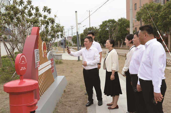 南通市海安大公鎮(zhèn)轄區(qū)內(nèi)的人大代表在立法信息采集點(diǎn)掃碼提立法建議