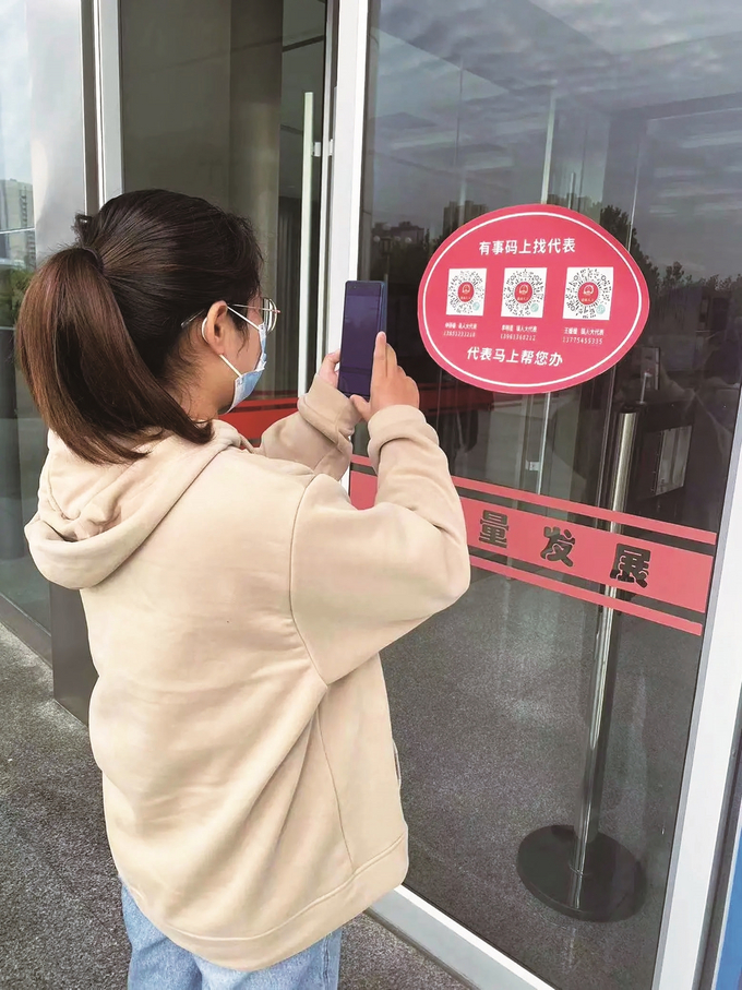 連云港市群眾正在代表之家通過掃碼找代表提建議