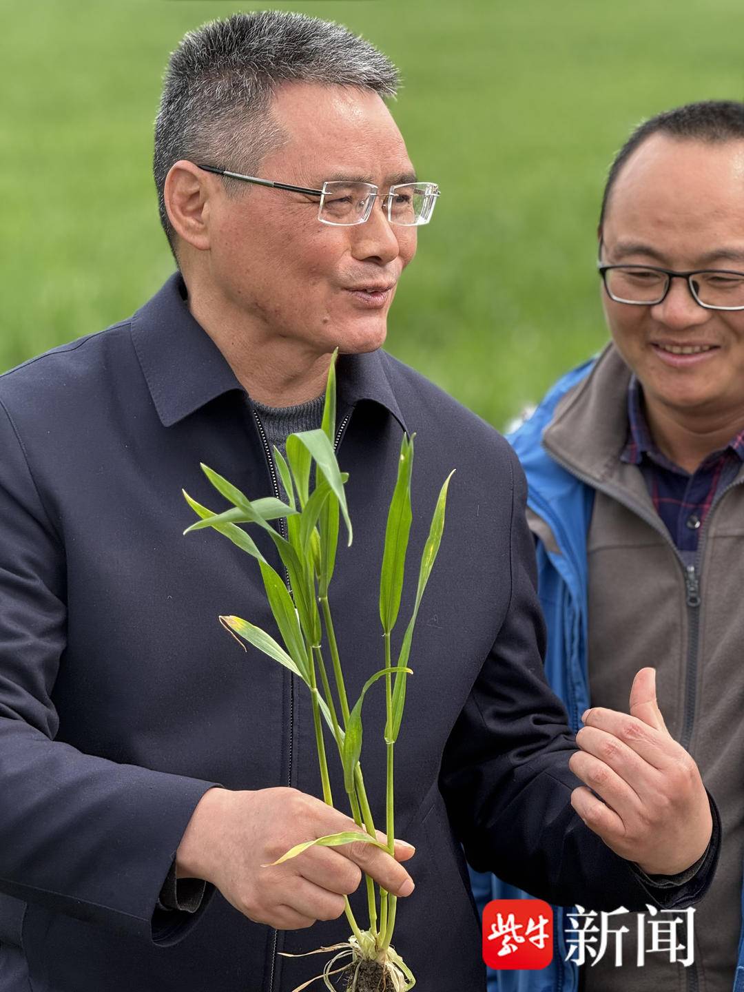 在和種糧大戶的座談中,揚(yáng)州市江都區(qū)永康家庭農(nóng)場農(nóng)場主胡永康當(dāng)著記者的面,對著高德榮直豎大拇指:“高主任是最接地氣的專家!小麥豐收的時(shí)候,在地里他頭上的汗直批(揚(yáng)州當(dāng)?shù)胤窖?,意思汗一直流)都顧不上擦!?/p>