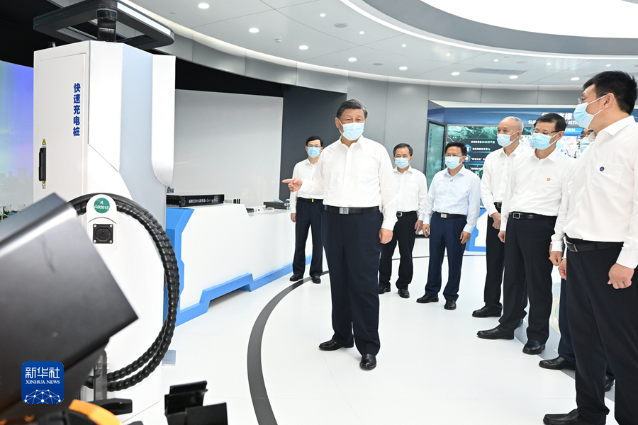 7月5日至7日,中共中央總書記、國家主席、中央軍委主席習(xí)近平在江蘇考察。這是6日下午,習(xí)近平在南京市考察南瑞集團(tuán)有限公司。新華社記者 謝環(huán)馳 攝